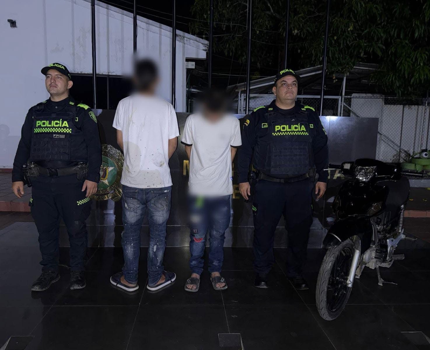 El joven mayor de edad fue capturado y el menor aprehendido, quedando ambos a disposición de la autoridad competente para el desarrollo de las diligencias legales. La motocicleta recuperada fue dejada bajo custodia, a la espera de los trámites administrativos y judiciales que permitan su devolución.