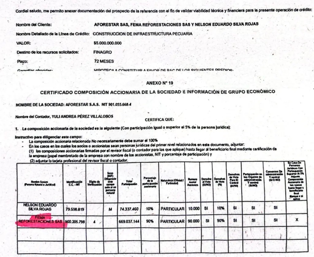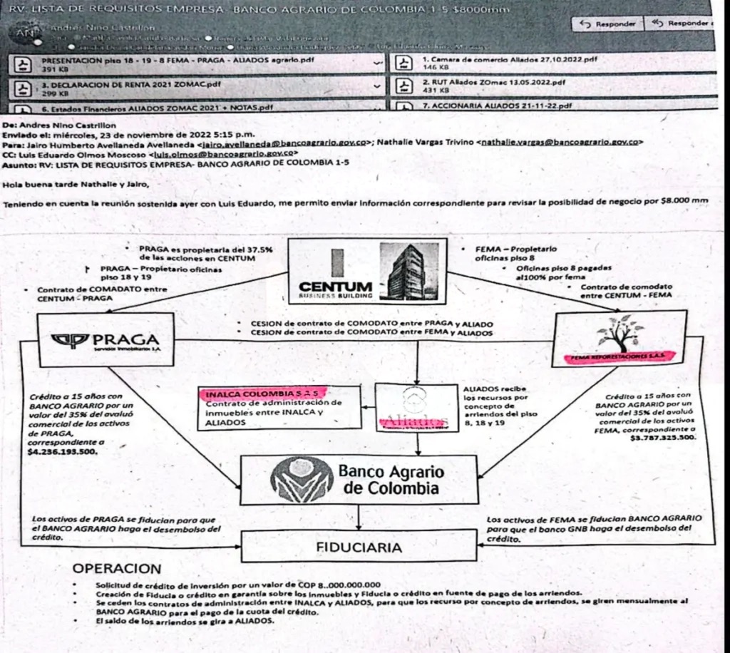 Los reportes señalan que se estructuraron dos créditos por cerca de 8.000 millones de pesos, dirigidos a PRAGA Servicios Inmobiliarios S.A. y FEMA Reforestaciones S.A.S., compañías registradas con vínculos a la familia Alcocer. A estas operaciones se suma un contrato de arrendamiento por diez años para una sucursal del banco, con un canon que superaría los 3.600 millones de pesos. La coincidencia entre las solicitudes de crédito y la propuesta de arriendo llamó la atención de las áreas técnicas, que identificaron posibles conexiones empresariales entre las firmas participantes.